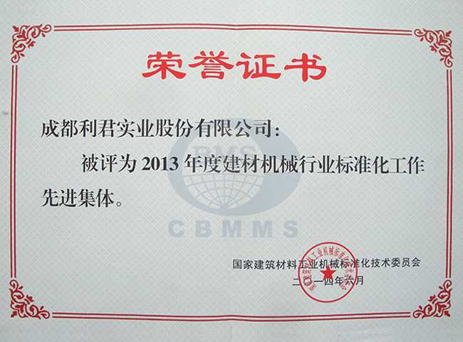 2012年,公司參與起草JC/T845-2011《水泥工業(yè)用輥壓機(jī)》建材行業(yè)標(biāo)準(zhǔn)。